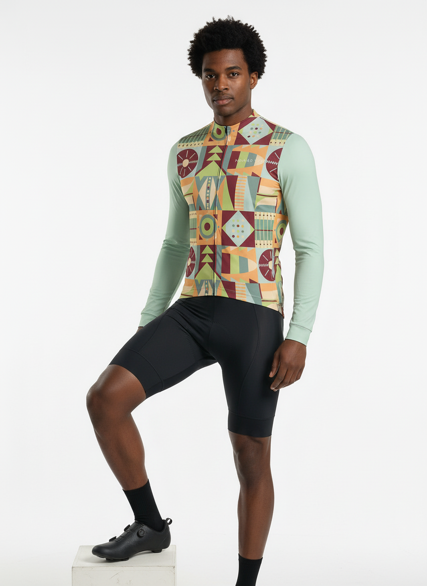 SaleCycling Green Geometric Long Sleeve Jersey – Aero Fit High-Performance Road | Nomad Vélo-40%