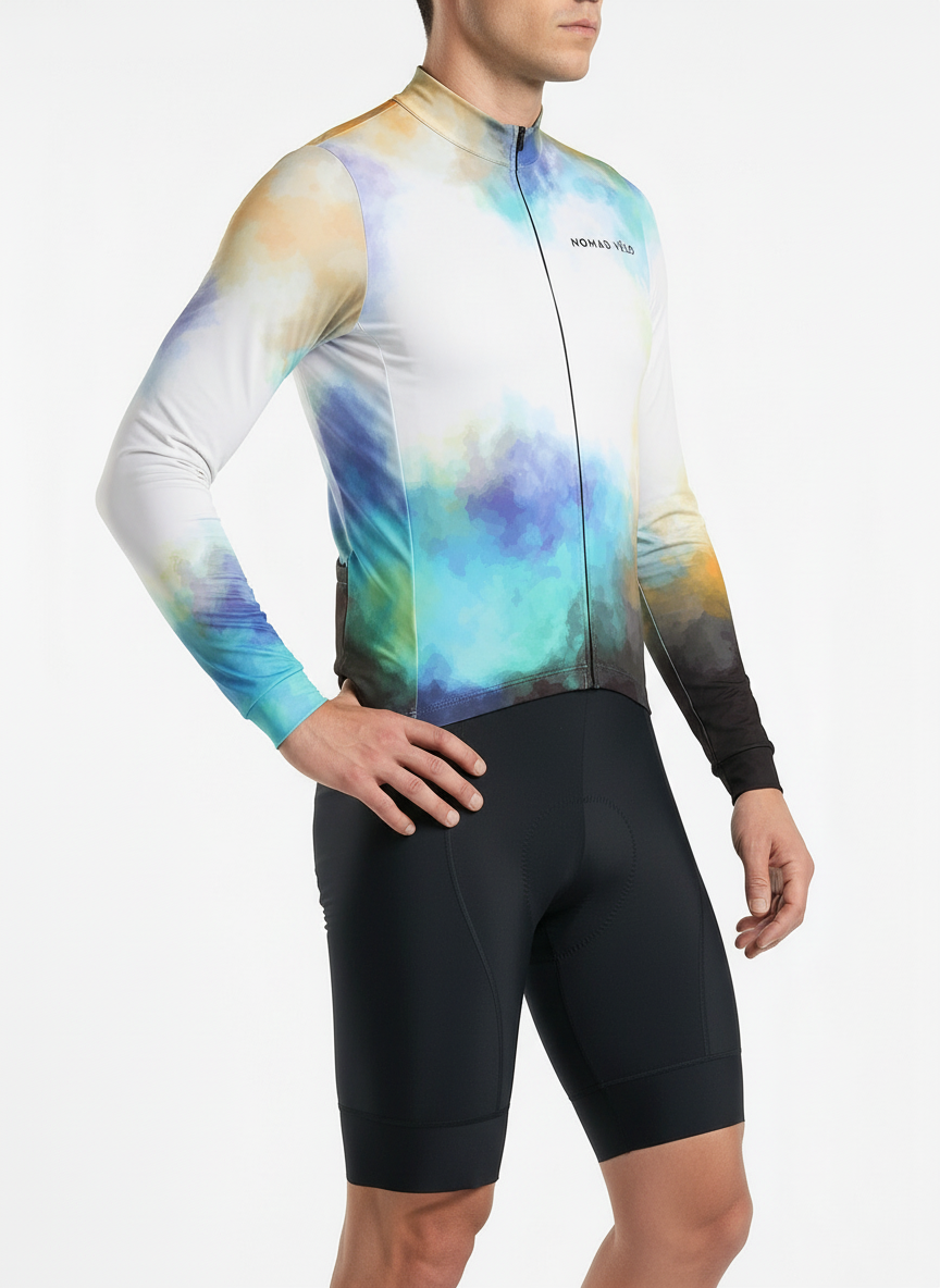 SaleCycling Aurora Long Sleeve Jersey – Aero Fit Thermal Gradient Northern Lights Design | Nomad Vélo-40%