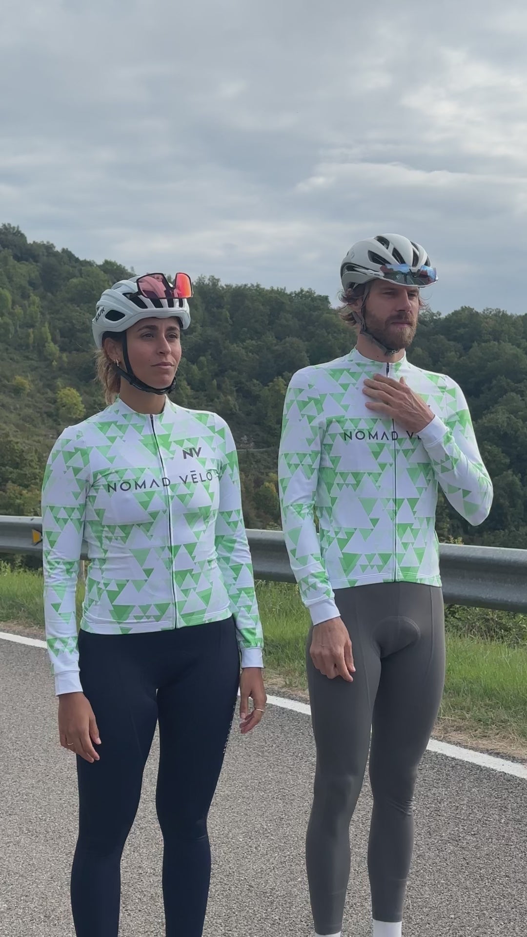 Cycling Green Geometric Long Sleeve Jersey – Aero Fit High-Performance Road | Nomad Vélo